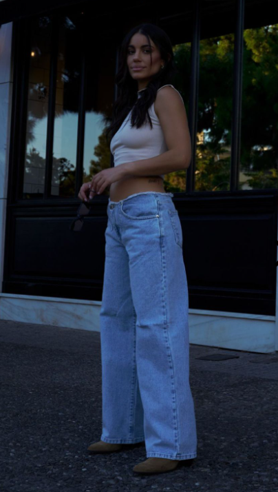 The Dirrty jeans in wide leg fit, are low rise in light blue denim color. We already love it thanks to the distressed waist, we hope you love it too!.